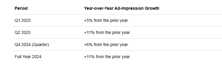 集合效应很好融会但威力极强 —— 用户越多,平台越有效。2025 年一季度,Meta 全居品日活跃用户(DAU)约 34.3 亿。参考一下:2025 年头全球网民约 55.6 亿 —— 约 60% 的东谈主每天齐会用 Meta 的 App(而且 Meta 还没进入中国市集)。如果剔除中国 11 亿网民,Meta 的渗入率会飙到惊东谈主的 77%。这样大的用户基数让 Meta 能:1)增强对品牌的议价权;2)蓄积千般化的告白库存,给不同用户推精确告白;3)靠海量数据执续系统优化告白算法;4)若出现新竞争敌手,能把用户导流到将来的新 App。