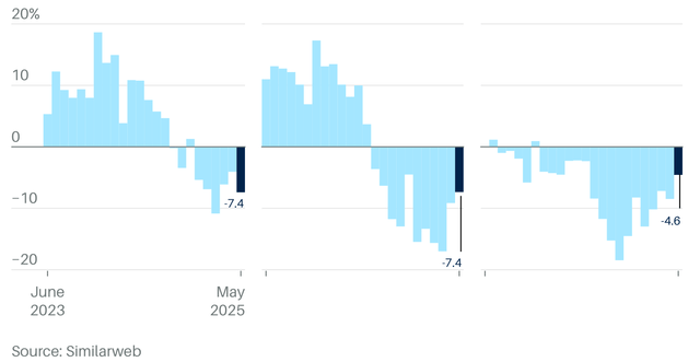 另一个周期性风险是品牌减少告白支拨。如果好意思国堕入严重经济零落,这种情况很可能会存在。届时,扫数公司齐可能受到影响。