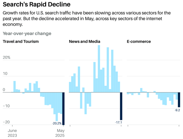 OpenAI、Perplexity、Claude、Copilot 等齐是搜索市集新出现的 “门”。我觉得东谈主们不会再荒谬翻开某个 App 搜索,而是在花技能最多的酬酢 / 新闻 App / 平台上搜信息。中国也曾出现这种趋势:东谈主们不再只用法百度,而是用微信、小红书、头条(新闻 App)通过大讲话模子(LLMs)搜索。据新浪财经报谈,2024 年四季度小红书日均搜索量从 2023 年中的 3 亿翻倍至 6 亿,主要收成于整合了大讲话模子。
