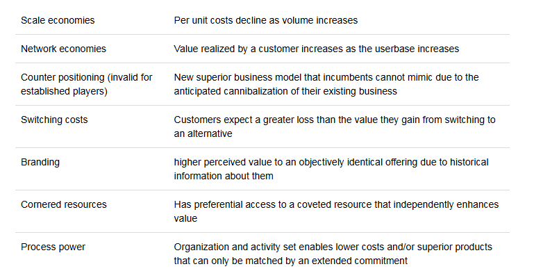 “七力模子” 来自汉密尔顿・赫尔默 2016 年出书的《七力:营业政策的根基》。书中提到七种具体、执久的业务上风开首,能帮企业遥远创造并保管逾额收益 —— 也即是 “强护城河”。这七力是: